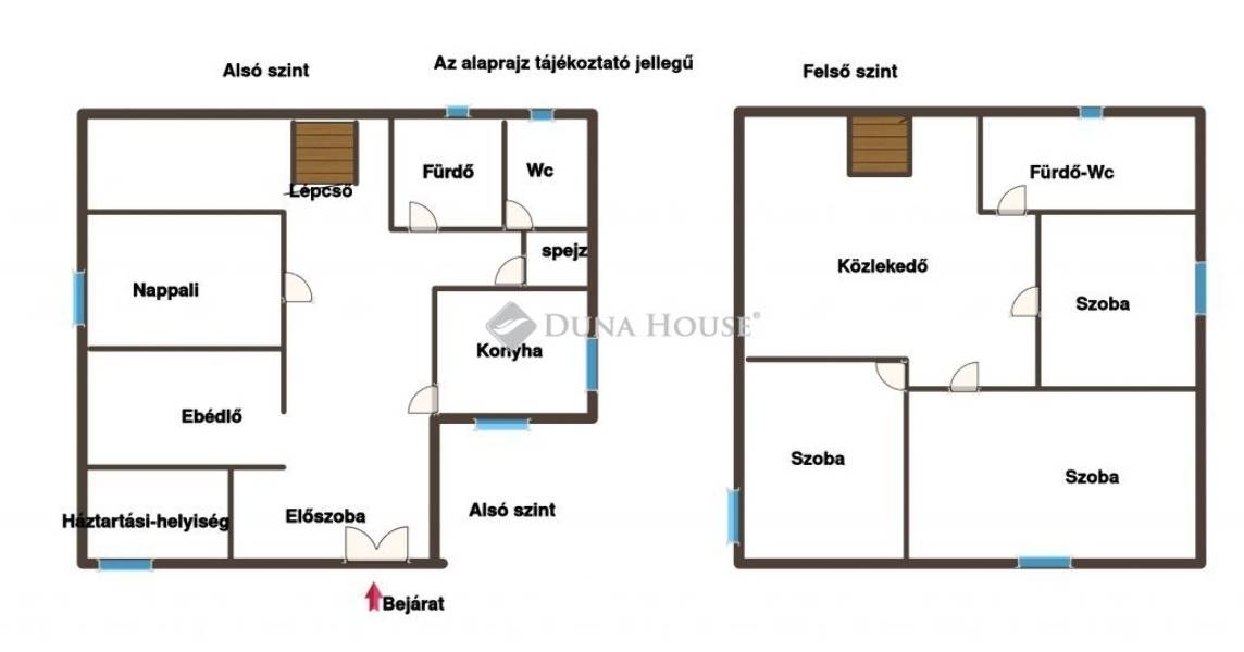 A tágas és világos alsó szinten( 70 m²-es ) nagy nappali, étkező, konyha egybenyitott tér fogad, amely igazán családias hangulatot áraszt. Innen nyílik a praktikus kamra, a kádas fürdőszoba WC-vel, valamint a háztartási helyiség.