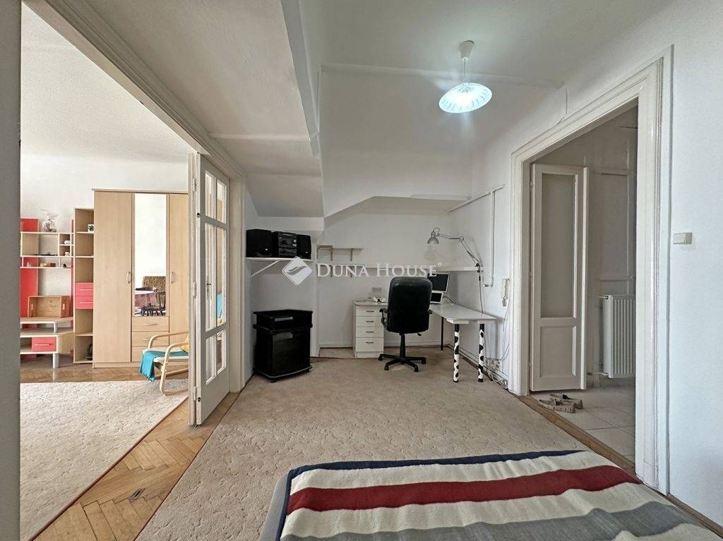 Lakást keresel Budapest belvárosában saját magad vagy irodád számára? Megvan amit keresel.A XIII. kerületben, a Krayer-házban eladó egy 63m2-es lakás. Az épületet a festék nagykereskedő Krayer-család építtette 1909-1910-ben. Tervezője Ágoston Emil neves bérház tervező. A mai napig jól karbantartott társasház legfőbb ékessége a magyaros-erdélyi szecessziós motívumokkal díszített tornyos rész.A félemeleti lakásban két szoba van, melyeket egy ajtóval lehet elszeparálni egymástól. A nagyobb szobát jelenleg nappaliként, a kisebbet pedig irodaként használja a tulaj. A szobákba egy folyosó visz a bejárati ajtótól, a folyosótól jobbra helyezkedik el a fürdőszoba, balra pedig a konyha. A lakás előtt egy 15m2-es, a két szomszéddal közösen használt terasz van. A lakhatás mellett megfelelő lehet irodának, rendelőnek is a hallos kialakítása miatt. Fűtése távfűtéssel megoldott. A nagy szoba ablaka a nyüzsgő Ferdinánd hídra néz, de a jó szigetelés miatt a lakásban ebből semmit sem hallunk. A lokációt tekintve az ingatlan környéke dinamikus és élettel teli. A belvárosi helyszín számos kultúrális és szabadidős lehetőséget rejt magában. A közelben éttermek, kávézók, üzletek. A Westend egy karnyújtásnyira található. A társasház aljánál egy Spar működik.A tömegközlekedés kiváló, közeli csomópontok egyik oldalról a Nyugati-pályaudvar (vasútvonal, 4-6-os villamos, buszok), másik oldalról pedig a Lehel tér (M3-as metróvonal, buszok).A lakást azonnal használatba lehet venni.Ára: 131.000.000ft