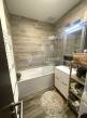 A konyha modern, beépített gépekkel felszerelt, az előszobában pedig egyedileg gyártott beépített szekrény nyújt praktikus tárolási lehetőséget.
