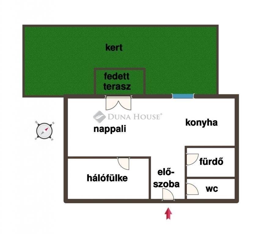 A lakáshoz 4,5 m² fedett terasz és 32 m² saját, privát kert tartozik.