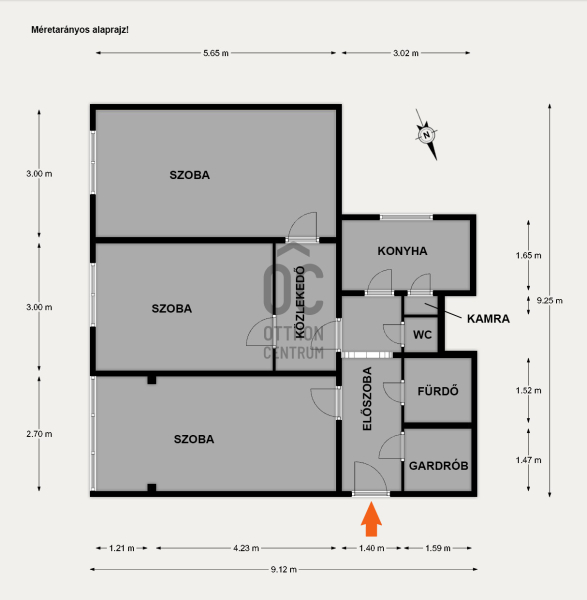 ✅ 3 nagyméretű szoba (17, 15, 12 m2)