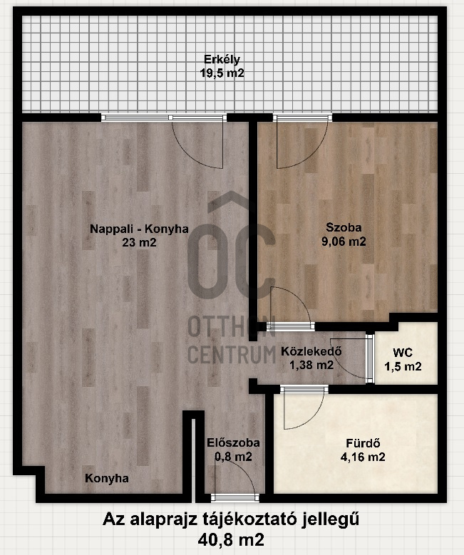 Az ingatlan alapterülete 40,8 m2 melyhez 13,5 m2 terasz tartozik