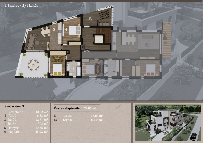 72,7 m² lakótér | 23,2 m² terasz | 14,6 m² fedett terasz
