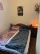 hálószoba: franciaágy matraccal, igény szerintágyneművel és huzattal, éjjeli szekrény, nagy, 10 ajtós, beépített gardrób szekrény