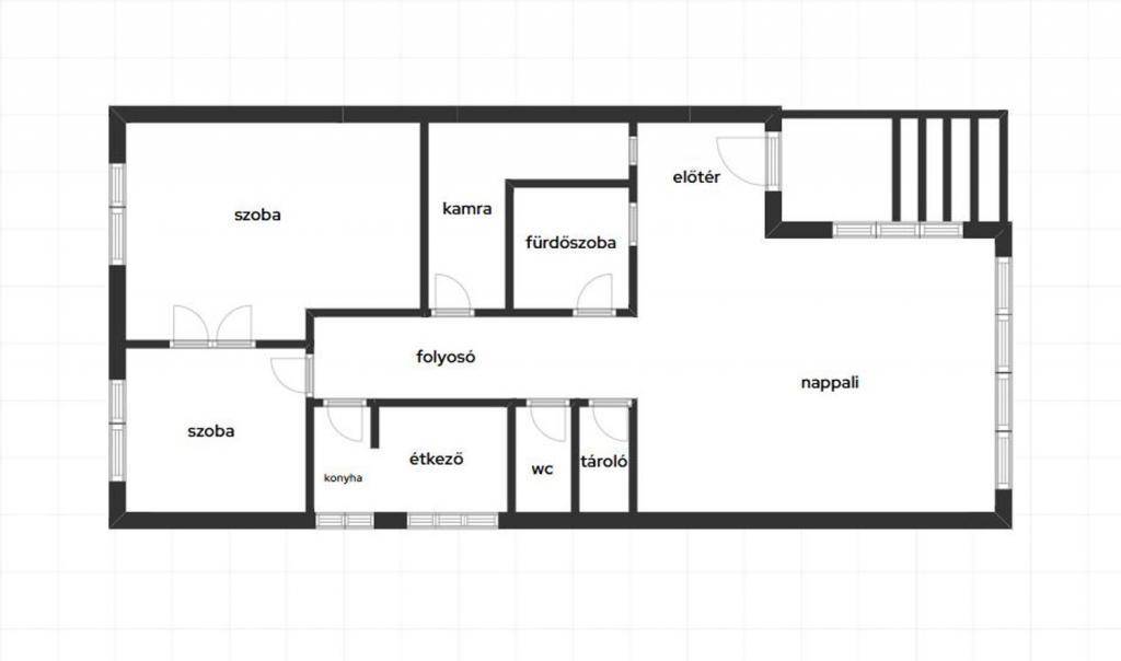 Az ingatlan jelenleg 3 szobás, belső elrendezése logikus, a terek jól variálhatók, így ideális alapot nyújt saját igények szerinti felújításhoz vagy akár funkcióváltáshoz is.