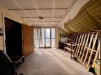 A nappaliból csigalépcső vezet a tetőtérbe, ahonnan egy tágas, fedett terasz nyílik. A terasz mögött padlástér található, amely további bővítési vagy tárolási lehetőséget kínál.
