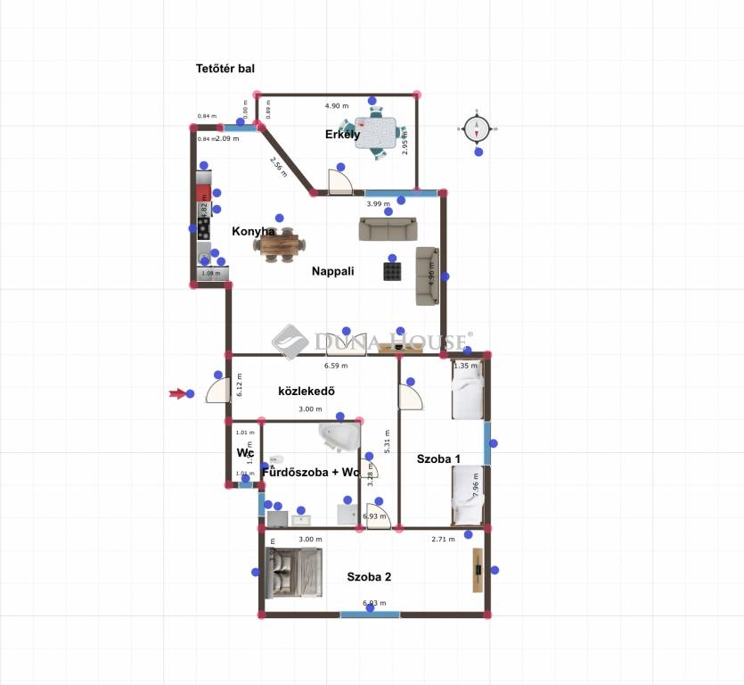 66,5 m² nettó, 91,5 m² bruttó alapterület tágas, szellős érzet