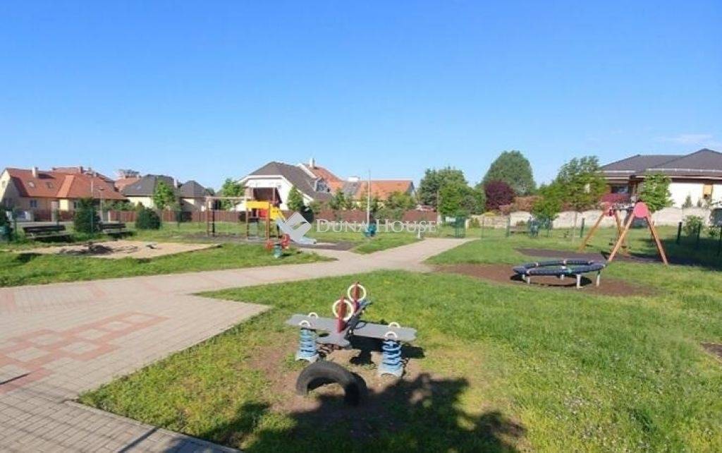 A ház mögött gondozott udvar, a közelben pedig játszótér hallótávolságra, ami sok családnak érték