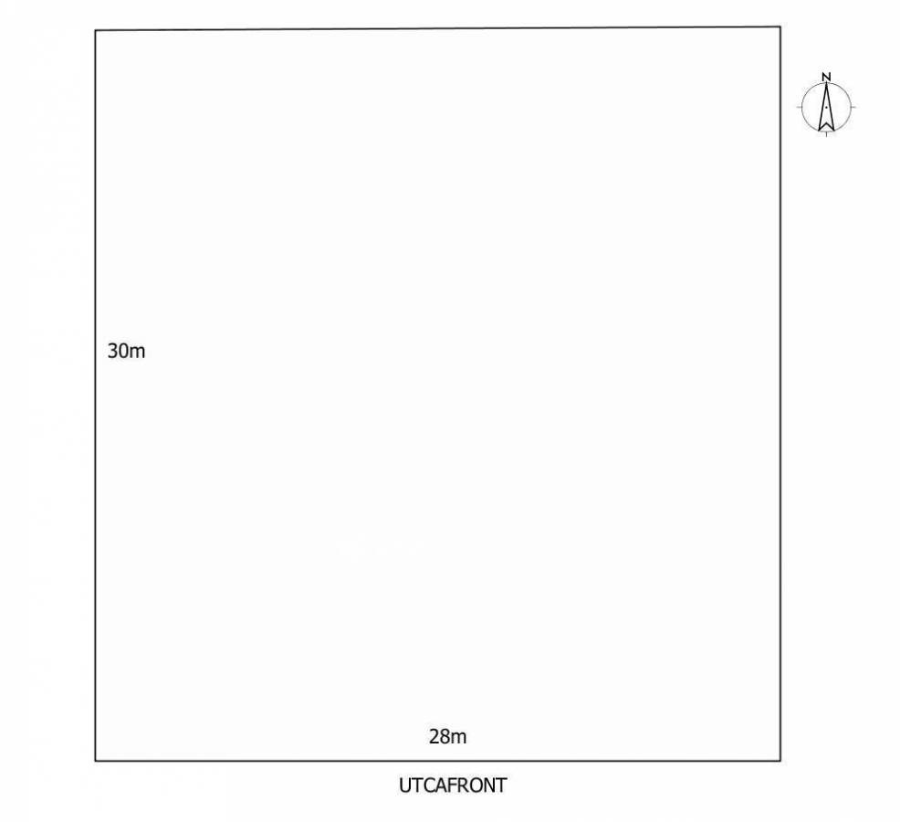 A 888m2-es telek 28m széles és 30m hosszú, rendkívül jó adottságú.