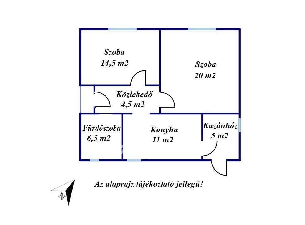 - Helyiségek: 2 szoba, konyha, fürdőszoba. (WC-vel), közlekedő, kazánház