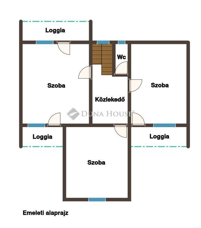 Az emeleten 3 hálószoba került kialakításra, 2 szobához erkély is tartozik, valamint szintenként külön WC biztosítja a mindennapi kényelmet.