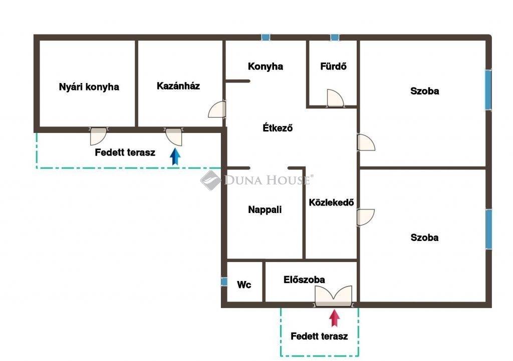 A nyári konyhát - egy ajtó beépítésével a válaszfalba - könnyedén a lakótérbe lehet vonni és egy szobával többet tudunk kihozni az ingatlanból.