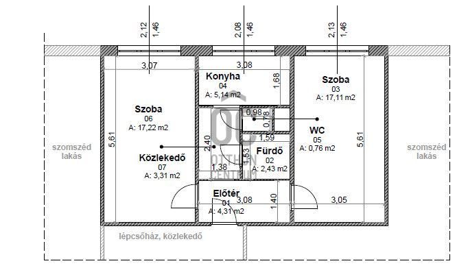 Alapterület: 51 m² | Szobák száma: 2 | Emelet: 2. | Déli fekvés | Jó állapotú