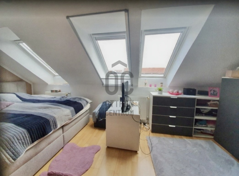 A tetőablakok 7 éve cserélve lettek, VELUX műanyag nyílászárókra, külső -, belső árnyékolóval, szúnyoghálóval felszereltek.