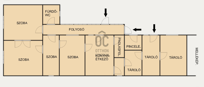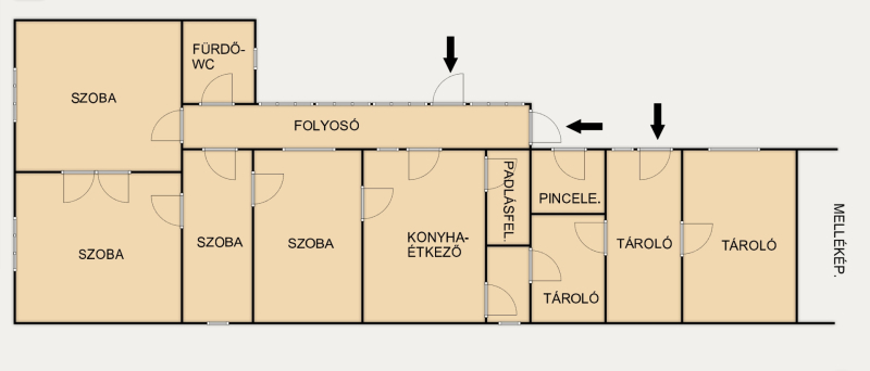 ✅ Födém: első rész betonfödémes, hátsó rész fa födémes