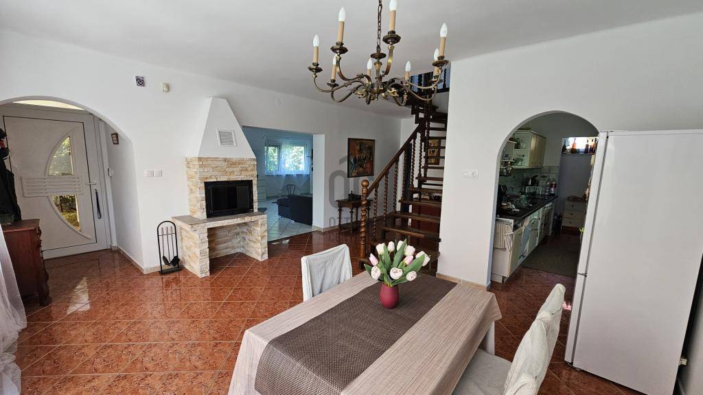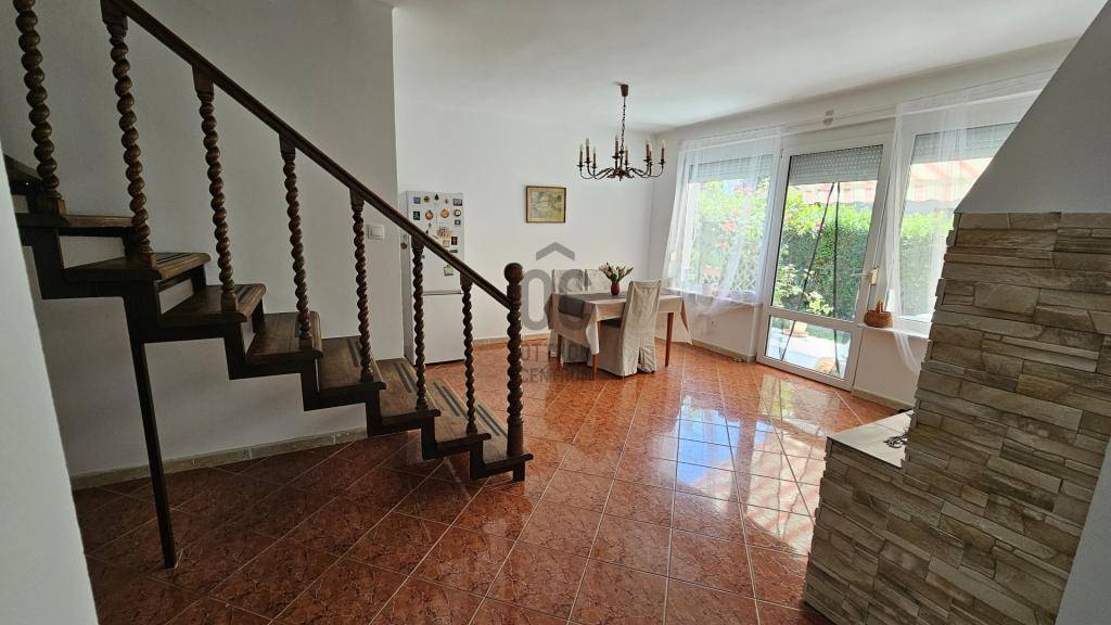 Alsó szint: tágas nappali, étkező, konyha, kamra, fürdőszoba, külön WC