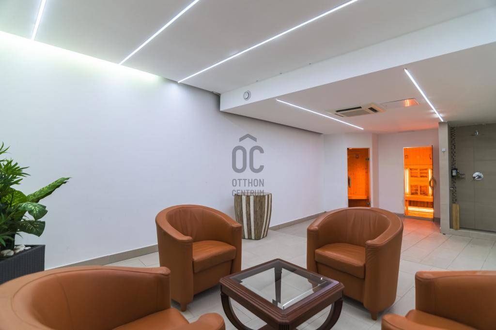 A társasház lakói számára a földszinten egy körülbelül hatvan négyzetméteres, feszített víztükrű medence és szauna áll rendelkezésre, míg az alaksorban egy szintén hatvan négyzetméteres, igényesen kialakított konditerem szolgálja a mindennapi feltöltődést. Ez az életérzés ritka érték a budapesti ingatlanpiacon.