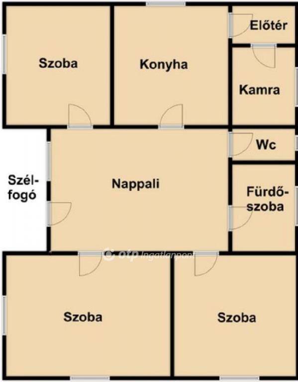 Helyiségei: nappali, 3 külön-nyíló szoba, konyha,fürdőszoba, WC és kamra.