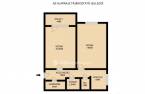 A lakás első szobája erkélyes, aminek az alapterületének fele a tulajdoni lapon bejegyeztett területbe már beszámításra került.
