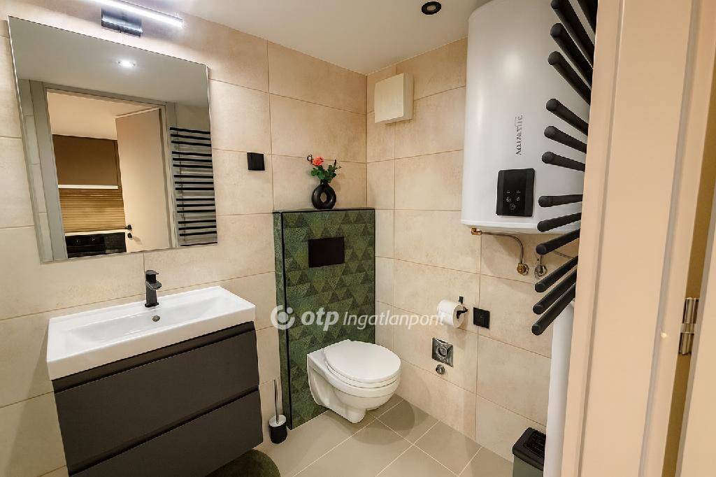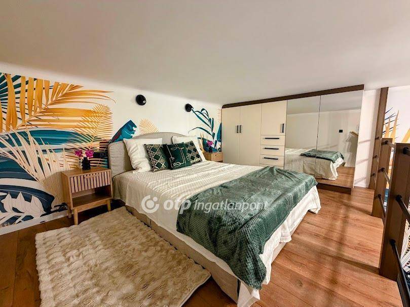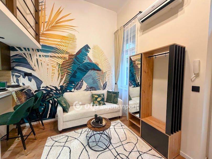 Az ingatlan teljes körűen felújított, modern kialakítású terekkel rendelkezik, design bútorokkal berendezve. A bejáraton túl egy 3,8 nm-es, közös használatú előtérből nyílik a lakás. A nappali a sok ablaknak és a keleti tájolásnak köszönhetően rendkívül világos. A gépesített konyha a mindennapi használatot maximálisan kiszolgálja, a fűtésről és hűtésről korszerű hűtő-fűtő klíma gondoskodik. A vadonatúj ajtók, valamint a hő- és hangszigetelt, nyílászárók nyugodt, komfortos lakókörnyezetet és napfényes belsőt teremtenek a belvárosi elhelyezkedés ellenére is. A nappaliban a fürdőszoba felett egy hálóként funkcionáló, 170 cm magas, 10 nm-es gyönyörű galéria került kialakításra.