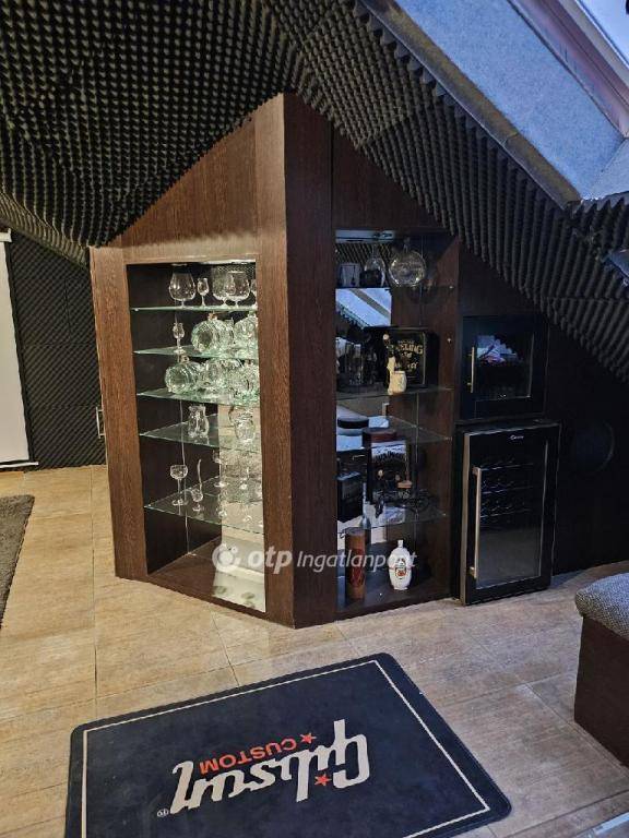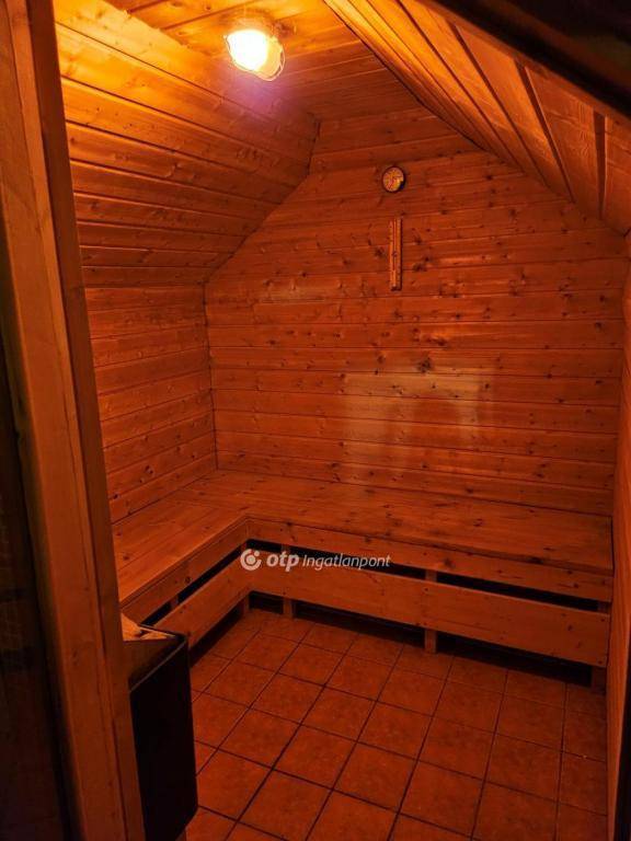 A felső szinten nappali, melybe beözönlik a napfény, hálószoba, zuhanyzó, WC és szauna szolgálja a kényelmet. A felső szint ?dühöngő?-ként funkcionálhat a stresszes mindennapok kipihenésére, hiszen a jelenlegi tulajdonosok a gyermekük részére hangszigeteltették, mivel hangszeren gyakorolt évekig, így nem zavarta a szomszédokat véletlenül sem.