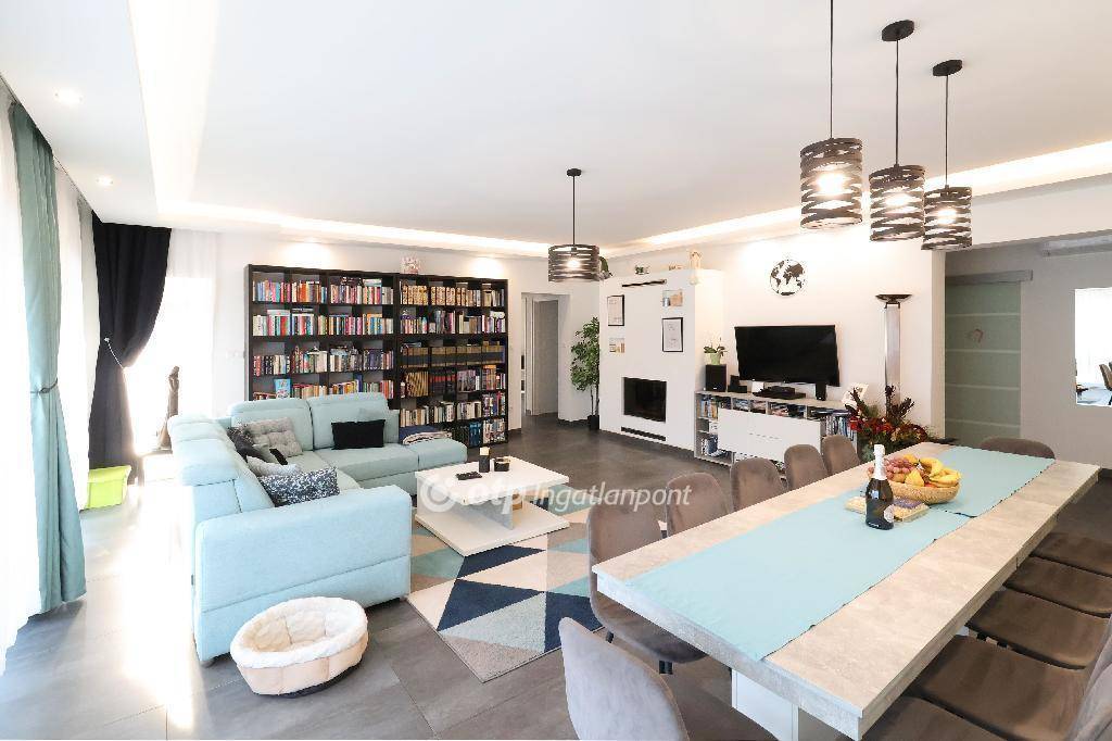 A kétgeneráció részére is kiválóan alkalmas otthon egy igényes házakkal beépített, csendes, kertvárosi utcában épült, nagyon jól átgondolt tervezéssel és magas szintű kivitelezéssel! A ház kerítéssel körbekerített, elektromos úszókapuval és személyi bejáróval rendelkezik, a hozzá tartozó telek területe összközműves, alapterülete 880m2.