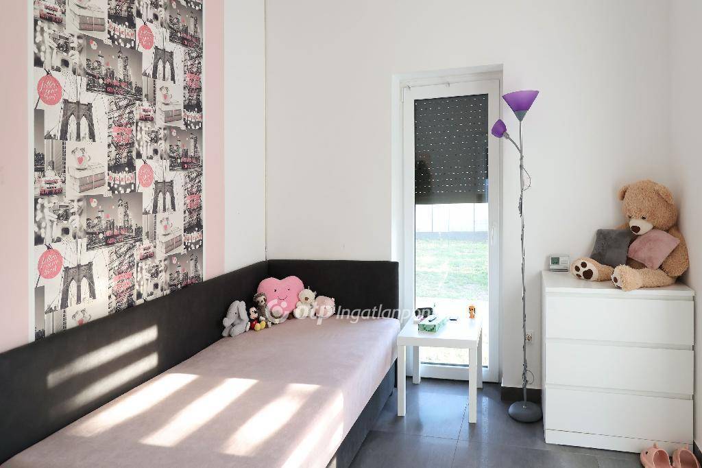 A téglafalazatú családi ház 20cm szigetelést kapott, a műanyag, 3 rétegű üveggel ellátott nyílászárók szúnyoghálóval és elektromos redőnnyel felszereltek. A ház fűtéséről, Ariston cirko kazán gondoskodik, 200 literes használati melegvíztartállyal, hőcserélővel és mágneses iszapleválasztóval, a meleget a padlófűtés és a fürdőszobákban felszerelt törölközőszárítós radiátor, valamint a nappaliban elhelyezett exkluzív kandalló adja. A tető Terrán Generon napelemes cseréppel fedett, így a háznak nincs áramköltsége. A napelem rendszerre 20 év a garancia.