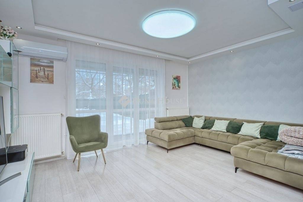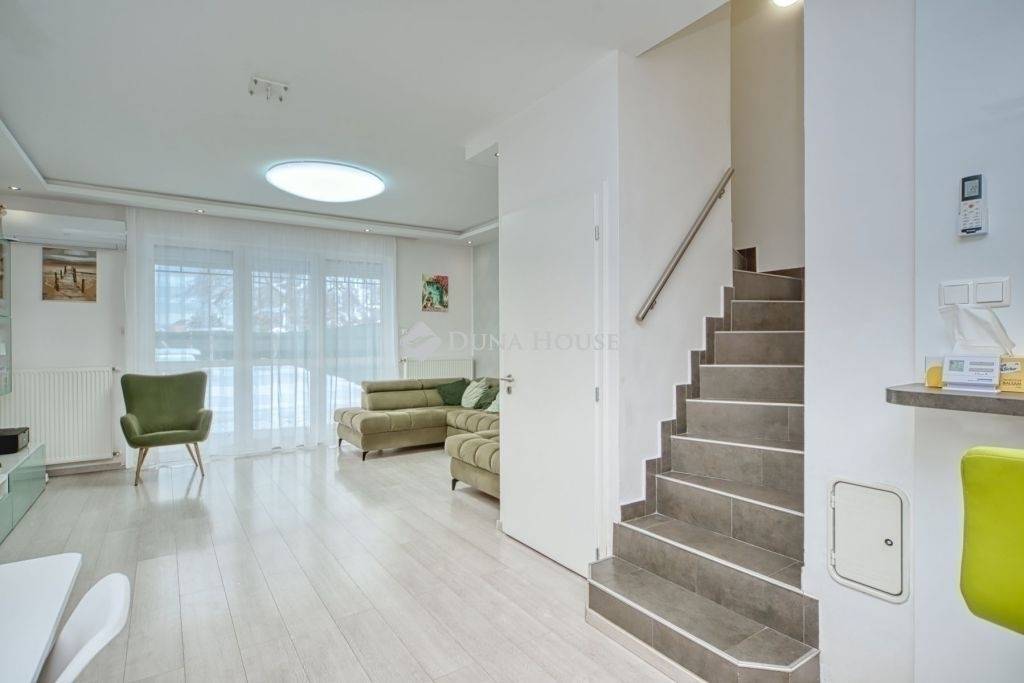 Családbarát környezetben, mégis mindenhez közel!Első ház vásárlók figyelem.Budapest X. Kerületének Óhegy részén eladó egy 2009-es építésű, 190 nm-es telken álló, 111 nm lakóterületű, négy szobás, családi otthon!Az eladó ingatlan 6 lakásos sorház egyik középső lakása.Az ingatlan belső két szintes, önálló helyrajzi számmal és külön mérőórákkal rendelkezik.Az autóbeállás több autó számára lehetséges, az előkertben, a hátsó kert a családi élet színtere lehet, tavasztó-őszig.A teljesség igénye nélkül az alábbiak jellemzik az ingatlant:- a fűtés ellátást: Sanier Duval Themafast F28 típusú cirkóval történik,- az épület szigetelt, a szigetelés: 10 cm,- összesen 4 klíma biztosítja a kellemes hőérzetet,- 3x32 amper hálózatbővítés,- részleges tetőfelújítás,- alumínium redőnyök az ablakokon, a terasz ajtón elektromos redőny,- elektromos kertkapu,- elektromos autó töltő pont + fedett autóbeálló kialakítás + kerítésen kívüli autóbeálló,- a tetőtérben a párnafák között gyapot szigetelés van,- új beltéri ajtók, álmennyezet, led világítás.A földszinti rész 65 nm, elosztását tekintve, amerikai konyha+nappali várja új lakóit, a garázsból egy hálószoba került kialakításra, ezen a szinten még zuhanyzó és wc, és előtér lett áll rendelkezésre.A nappaliból elölről is közvetlen kijárat nyílik a kertbe, ami még kényelmesebbé és élhetőbbé teszi a mindennapokat, a nappali terasz kapcsolatos.Az emeleti szintre kényelmes lépcsőn jutunk fel, ez a szint 35 nm, az előtérből fürdőszoba+ wc, két hálószoba nyílik, az egyik erkély kapcsolatos.A vételárrészét képezi:- a beépített gépesített konyhabútor, a tűzhellyel, a sütővel, a hűtővel, a mosogatógéppel és a mosógéppel együtt,- a 4 db klíma,- az ingatlan teljes bútorzata, kivéve a nappaliban lévő szekrény és ülőgarnitúra,- a kertben az akril jakuzzi.A hátsó kert szinte gondozás mentes, a műfű 2025- ben lett kialakítva, kerti csap rendelkezésre áll.Kiemelném a családi otthon fűtés számlája havi 12,000, Ft.FONTOS: a garázsból kialakított földszinti hálószoba tökéletesen alkalmas üzlethelyiségnek is.Környék:Közelben néhány percre az Óhegy park, Sibrik Lidl, Interspar, kutyasétáltatási lehetőségek, óvoda, általános iskola, gimnázium, buszmegállók (Örs, Köki felé). Nem elegendő készpénze? Áthidalna? Hitelcentrumunk teljes körű és díjmentes hitel ügyintézéssel áll az Önök szolgálatára.Amennyiben további információval a segítségére lehetek, hívjon bizalommal!