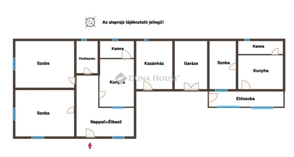 Nappali-étkező-konyha (amerikai konyhássá alakítható)Hátsó rész: nyárikonyha, kisebb szoba, kamra