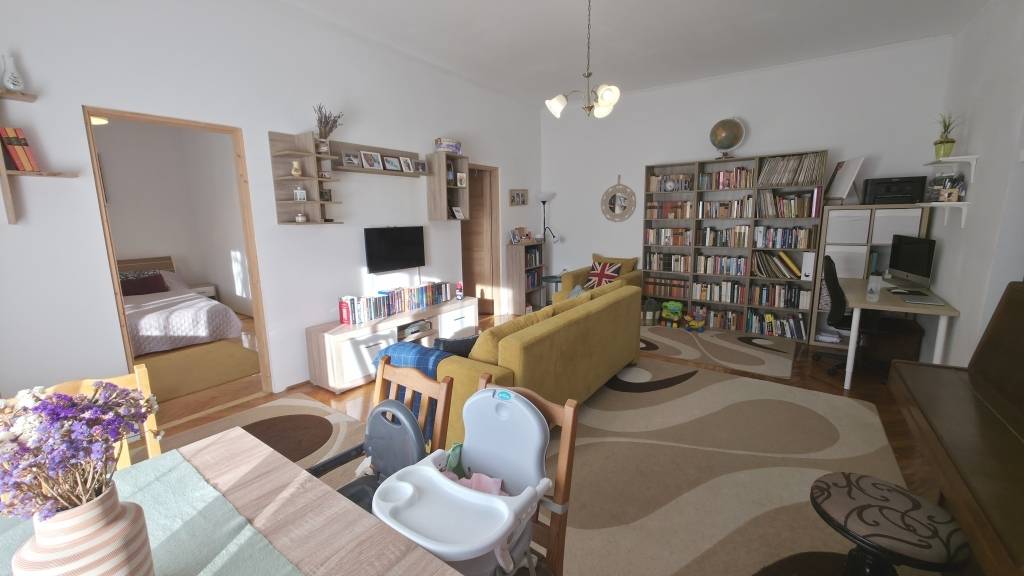 - kifejezetten tágas, 72 m2-es, jó állapotú és elosztású, nyugati tájolású nappali + 2 szoba