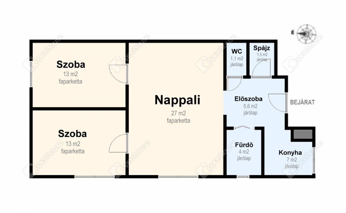- a külön nyíló szobákban jó állapotú faparketta, a többi helyiségben járólap a burkolat
