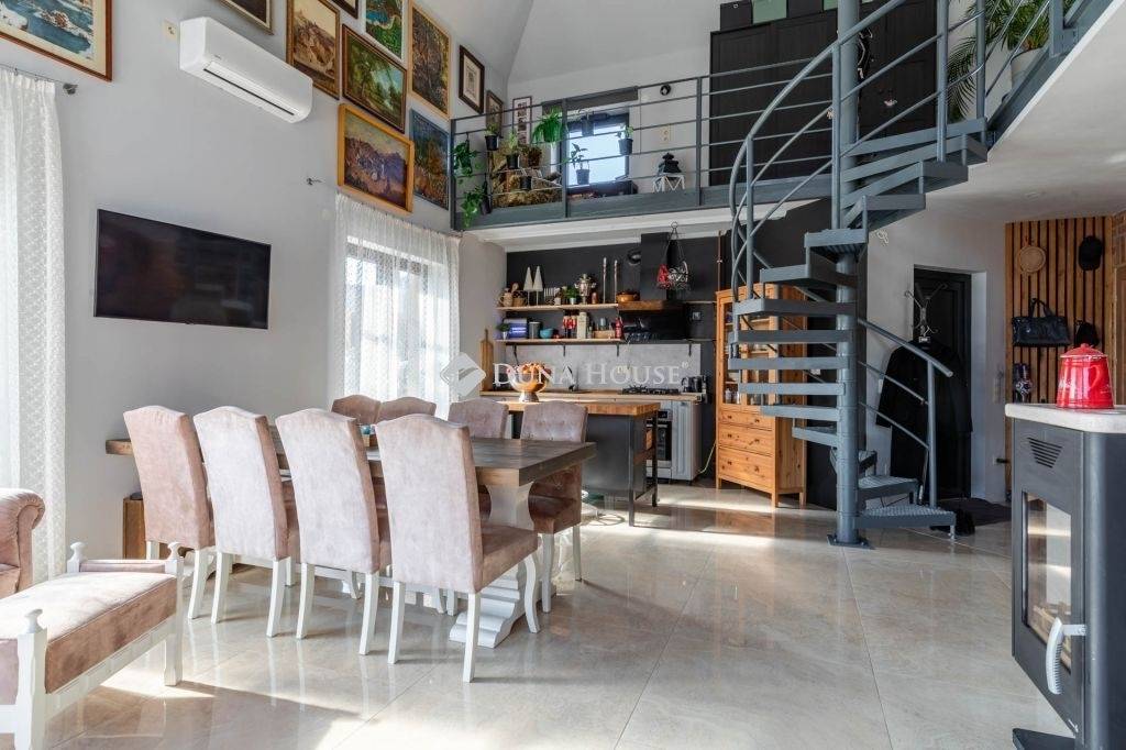 Szendehelyen, a természet nyugalmát árasztó Börzsöny szomszédságában, mégis Váctól mindössze 12 km-re, Budapesttől pedig alig 30 perc autóútra kínálunk megvételre egy igazán egyedi hangulatú, kétszintes családi házat, amely műszakilag és esztétikailag is kiemelkedően igényes kivitelezéssel készült 2021-ben, egy 1000 m²-es, parkosított telken.A letisztult, mégis otthonos enteriőr azonnal magával ragad: A földszinten tágas nappali, modern konyha, egy különálló hálószoba, elegáns fürdőszoba (káddal és zuhanyzóval is), vendég-WC, valamint praktikus háztartási helyiség szolgálja a kényelmet. A 28 m²-es terasz közvetlenül kapcsolódik a nappalihoz, tökéletes helyszíne lehet egy nyugodt reggelinek vagy esti borozásnak. Az emeleten nyitott galériás kialakítás fogad: egy légtérben dolgozósarok, olvasó- és hálógaléria, ami a ház atmoszféráját különösen meghitté és inspirálóvá teszi. A házhoz tartozik egy önálló, 15 m²-es garázs.A ház minden részletében a gondos tervezés és a magas minőség tükröződik időtálló anyaghasználat, korszerű gépészet és harmonikus belső terek jellemzik. Nemcsak otthonnak tökéletes, hanem remek BEFEKTETÉS is! A környék folyamatosan fejlődik, a Börzsöny közelsége pedig túrázók, természetkedvelők számára vonzó célponttá teszi akár vendégházként, akár rövid távú kiadásra is ideális lehet.Ha szeretne egy nyugodt, természetközeli, mégis modern otthont, amely értékálló és egyben különleges ne hagyja ki ezt a lehetőséget! További információért, megtekintésért keressen bizalommal!