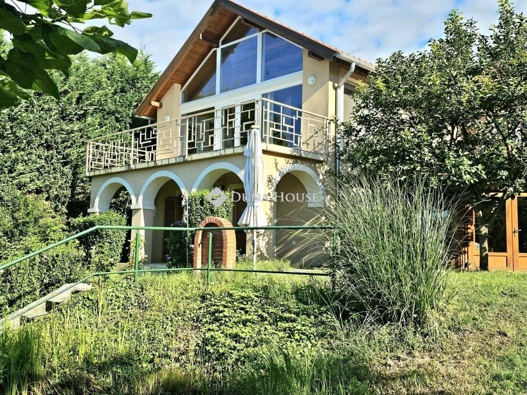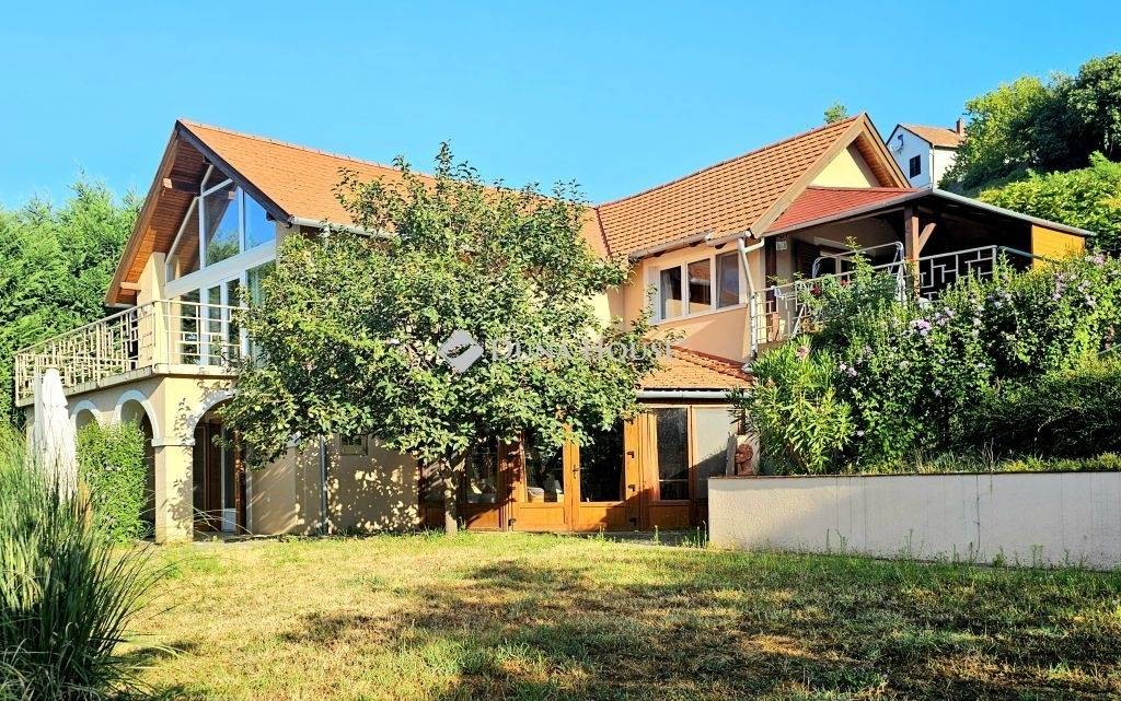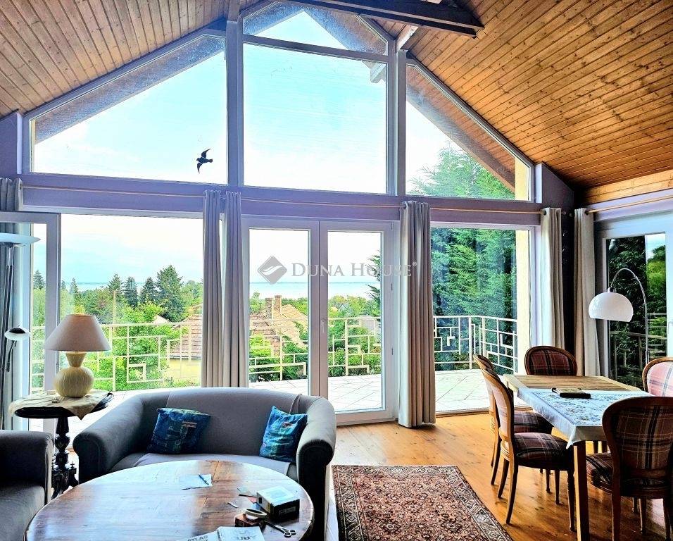 Badacsonytomaj és az északi part egyik legkülönlegesebb panorámájú ingatlana eladó!Ha Ön valódi balatoni panorámára vágyik, nem csupán egy kilátással hirdetett házra, ez az ingatlan garantáltan lenyűgözi. A hatalmas, nyitott légterű nappaliból és a teraszról ugyanis olyan páratlan kilátás tárul elénk, hogy szinte úgy érezhetjük: miénk a Balaton, de legalábbis az otthonunk része! A hatalmas üvegfelületek és a tágas panorámaterasz közvetlen kapcsolatot biztosítanak a tájjal, és a természet közelségének élményét nyújtják minden évszakban.Az épület egyedi építészeti megoldásai és különleges belmagassága rendkívül elegáns térérzetet adnak nem mindennapi érzés ide belépni! A két szinten kialakított élettér lehetővé teszi akár két generáció, akár vendégeink kényelmes elhelyezését: mindkét szinten található fürdőszoba és hálószoba, és ehhez még számos olyan helyiség is csatlakozik, amelyek funkciója szabadon alakítható! A ház mindkét szintje - Badacsonytomaj teraszos domborzata révén - közvetlen kertkapcsolatot biztosít, így a természet és a ház organikus egységet alkot.A 1519 m²-es, szépen parkosított kert valódi édenkert benyomását kelti, tele dísznövényekkel, bokrokkal és fákkal ugyanakkor a helyszín könnyen megközelíthető, aszfaltozott útról elérhető és a kevésbé gyakorlott, akár síkvidéken élők is könnyedén felvezethetnek ide.A ház jelenlegi formáját 2005-ben álmodták meg tulajdonosai, a kivitelezés pedig időtálló, jó minőségű anyagok felhasználásával történt.A terek az alsó szinten: hatalmas, dupla méretű, teraszkapcsolatos hálószoba, zuhanyzós fürdőszoba, műterem és tárolók, mely utóbbiak akár más funkciókat is kaphatnak a jövőben. A felső szintre egy stabil, kényelmes falépcsőn jutunk fel, itt a hatalmas, dupla üvegajtós, üvegfalas nappali, egy kényelmes előtér, jó méretű hálószoba, kádas fürdőszoba és egy étkezőkonyha került kialakításra.A hangulatról és a fűtésről mindkét szinten fatüzelésű kályhák gondoskodnak a hűvösebb napokon, a közművek közül minden elérhető az ingatlanban, a gáz kivételével. A kertben pavilon, fedett teraszok, és fedett parkoló teszik még teljesebbé ezt a különleges otthont vagy nyaralót.A Balaton partja és a legközelebbi strand gyalogosan 10 percre található, de a badacsonyi központi strand is mindössze néhány perc autóútra található innen. Távolsági busszal vagy vonattal utaznának? Az sem probléma, az állomások szintén 10 perces sétatávolságra vannak az ingatlantól! Ebben az ingatlanban a nyugalom és a kényelem egyaránt biztosítva van az Ön és családja számára.Ajánljuk mindazok számára, akik nemcsak egy házat, hanem egy életérzést keresnek: nyugalmat, igazi balatoni panorámát, idilli hangulatot a fenséges Badacsony bazaltsziklái közelében.Keressen bizalommal, ha mindezt szeretné személyesen is megtapasztalni!