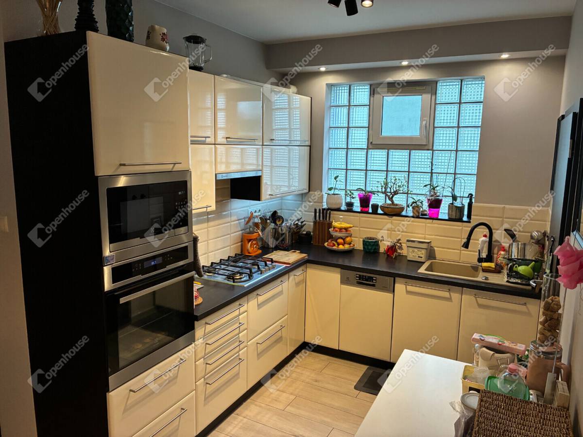 A modern, gépesített beépített konyha azonnal használatra kész.
