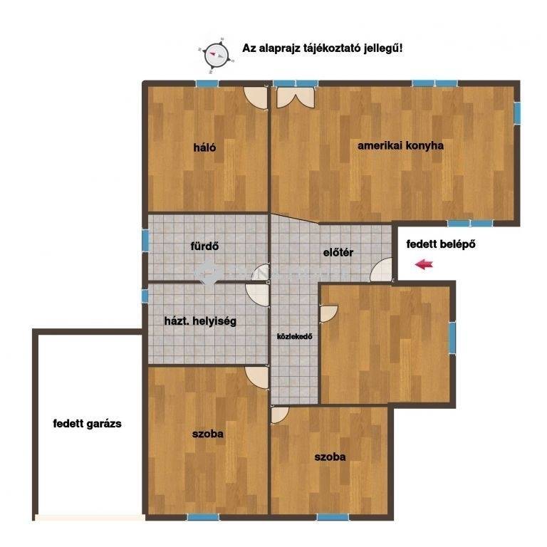 Elrendezés: nappali + 4 hálószoba