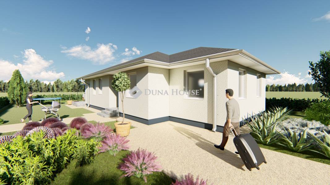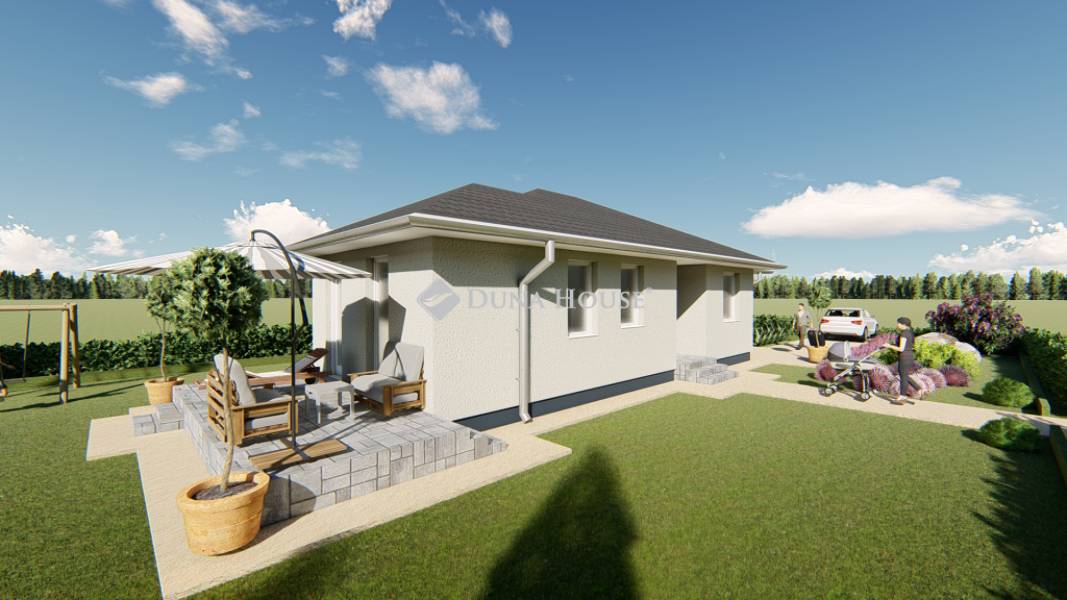 Kecskemét Kadafalva városrészében, csendes, zöldövezeti környezetben kínálunk eladásra két új építésű, energiatakarékos ikerházat.