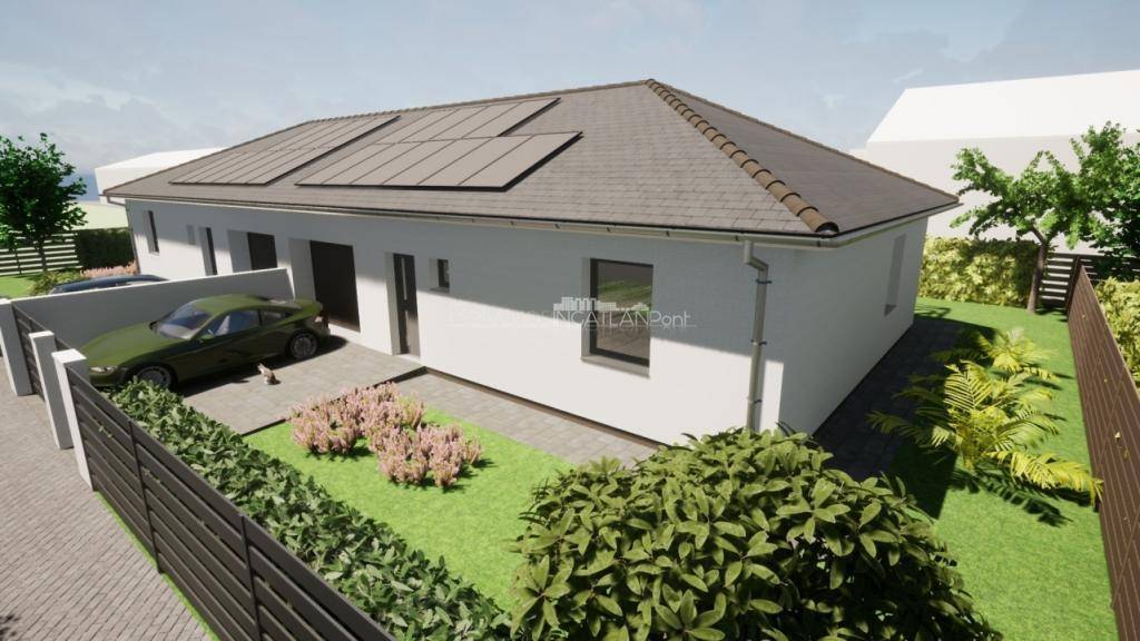 A hirdetésben szereplő K-i tájolású ikerház 72,91 m2 + 17,80 m2 garázs, nappali + 2 szoba, konyha,- étkező, háztartási helyiség, külön fürdő,- WC, helyiségekkel, 15 m2-es fedett terasszal, 340 m2-es telekrésszel eladó.