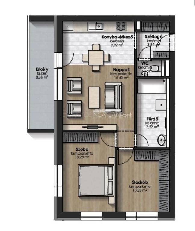 - nappali + 2 szobás