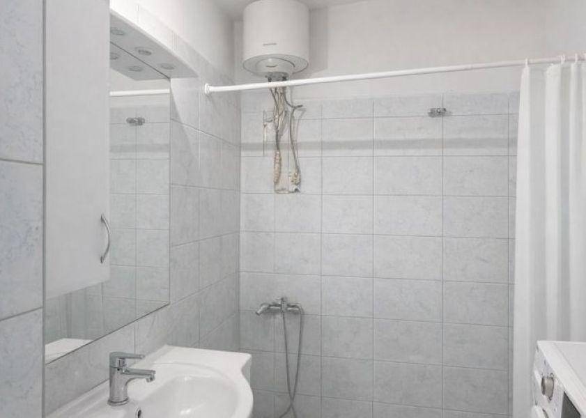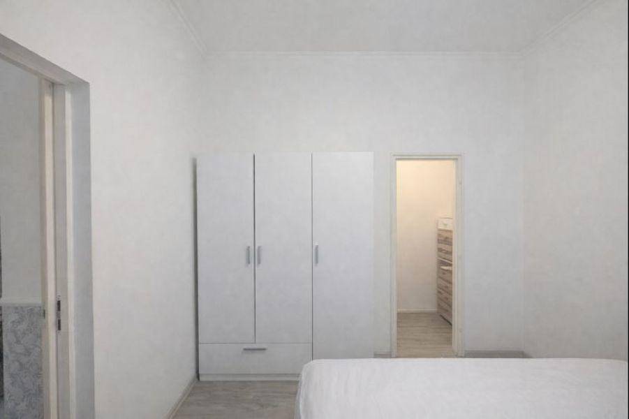 Helyiségek: Konyha-étkező (modern bútorral), zuhanyzós fürdő, két hálószoba, külön kamra és gardrób.