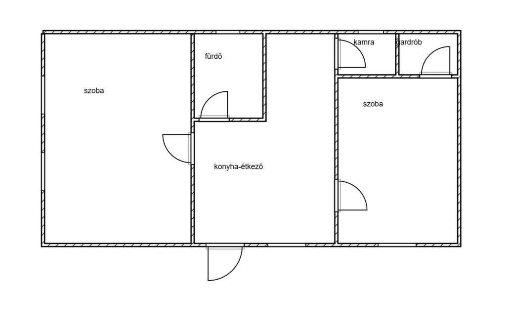 Alapterület: 55 nm, praktikus 2 szobás elosztással.