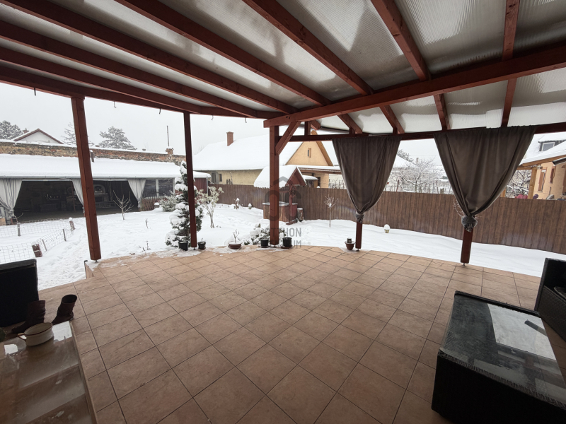 A 30 négyzetméteres fedett terasz kimondottan kedves kinézetet kölcsönöz a háznak. A kerti fedett kiülő mely kemencével is rendelkezik, tökéletes helyszín a nyári estéken való pihenéshez, baráti összejövetelekhez.