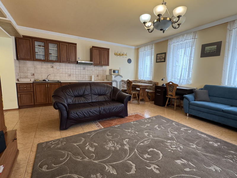-Bútorozott, műszaki kis- és nagy gépekkel felszerelt (mosógép, szárítógép, elektromos főzőlap,sütő, szagelszívó, hűtőszekrény, mikró, kávéfőző ).