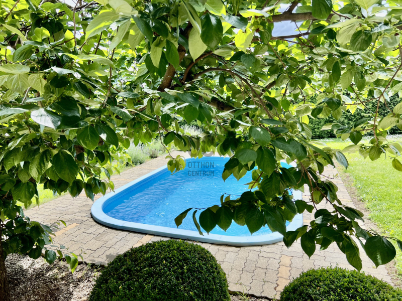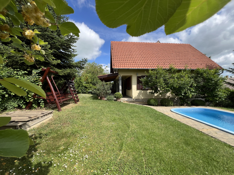 A Balatontól mindössze 1500 méterre, Balatonföldvár nyugodt, ritkán beépített részén kínálunk megvételre egy valóban különleges adottságú, gondosan karbantartott, medencés családi házat.