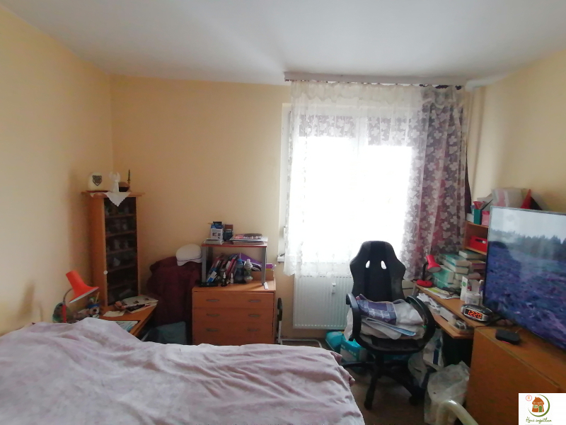 Jó elosztású, kényelmes lakás két tágas szobával, redőnyös műanyagablakokkal. Minden helyiség külön nyílik a nagy előtérből, amit étkezőnek is használnak. Kis ráfordítással nagyon szerethető otthona lehet!