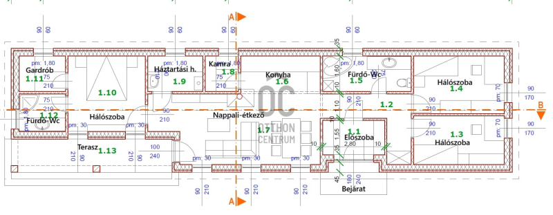 - Szobák: nappali + 3 hálószoba+ gardrób+háztartási helyiség+kamra