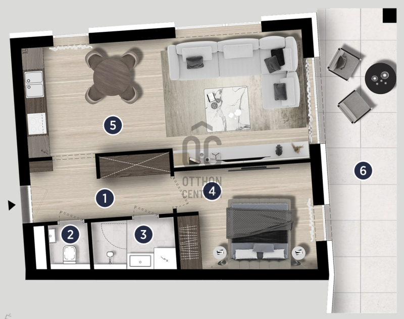 A liftes, modern épületek földszintjén és az első emeleten 4-4 db 48 m2-es, összkomfortos, fedett teraszos lakást, míg a második emeleten 2 db 68 m2-es penthouse-t kínálunk. A földszinti ingatlanokhoz élősövénnyel elválasztott privát udvar, a legfelső szinten pedig mindkét lakáshoz 68 m2-es, napvitorlával árnyékolt, vagy igény esetén végleges fedéssel ellátott tetőterasz, illetve jakuzzi tartozik. A leendő tulajdonosok egy teljesen gépesített, kompakt luxusotthont kapnak külön hálószobával, hasznos terekkel és fedett terasszal.