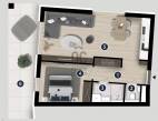 A liftes, modern épületek földszintjén és az első emeleten 4-4 db 48 m2-es, összkomfortos, fedett teraszos lakást, míg a második emeleten 2 db 68 m2-es penthouse-t kínálunk. A földszinti ingatlanokhoz élősövénnyel elválasztott privát udvar, a legfelső szinten pedig mindkét lakáshoz 68 m2-es, napvitorlával árnyékolt, vagy igény esetén végleges fedéssel ellátott tetőterasz, illetve jakuzzi tartozik. A leendő tulajdonosok egy teljesen gépesített, kompakt luxusotthont kapnak külön hálószobával, hasznos terekkel és fedett terasszal.