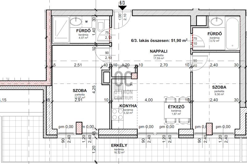 Erkély mérete: 17 m2