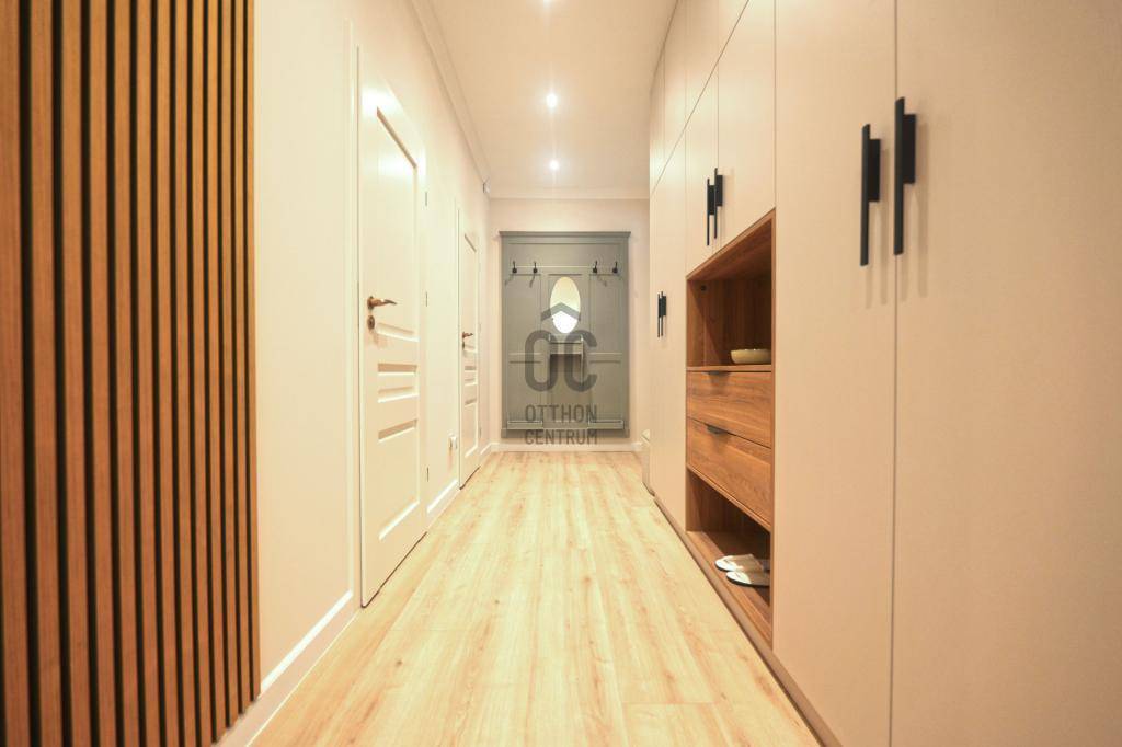 Tágas előszoba mennyezetig érő beépített gardróbbal