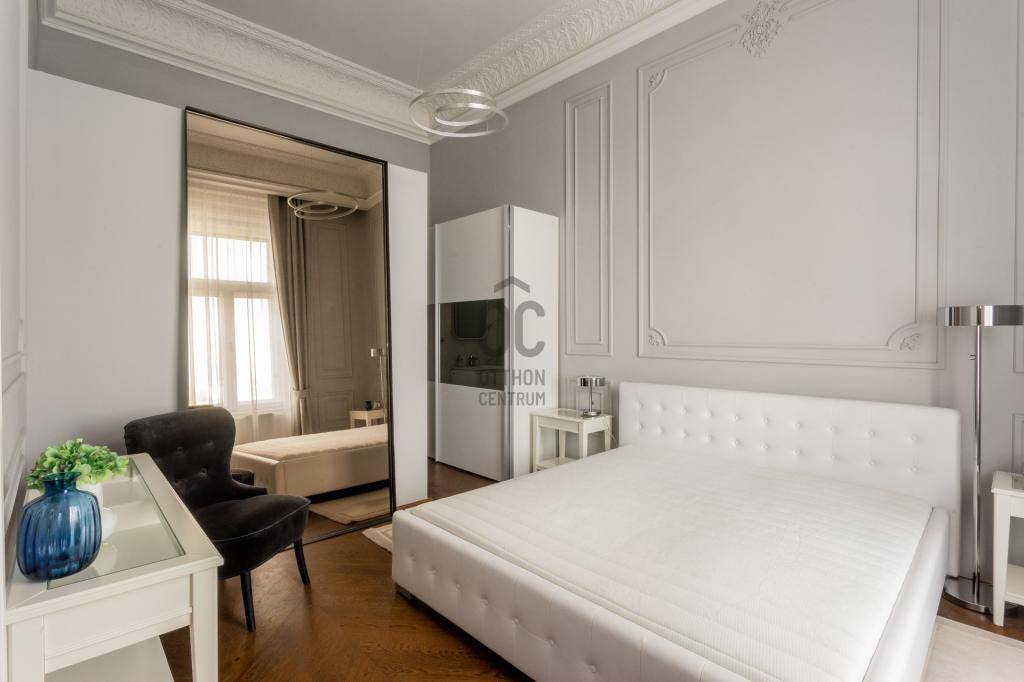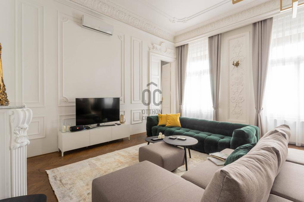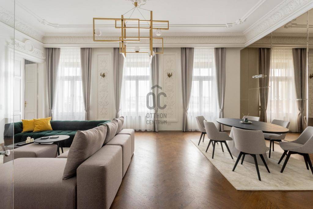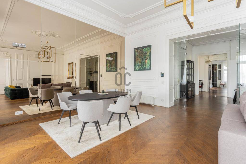 Kivételes lehetőség Budapest egyik legpatinásabb részén! Hosszú távra (minimum 1 év) kiadó egy 147 m²-es, arisztokratikus eleganciával kialakított, okosotthonként működő lakás, páratlan Duna- és Parlamenti panorámával.